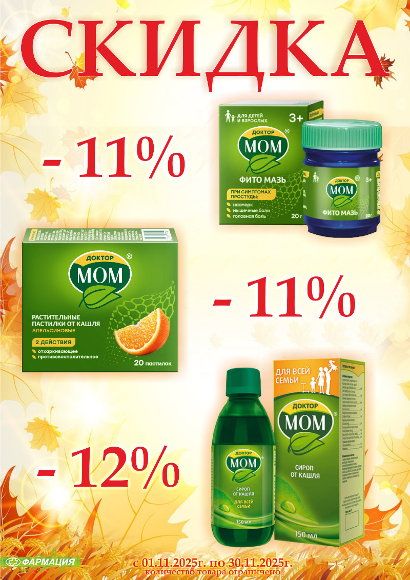 До 30 ноября 2025г. в сети аптек ОАО "Фармация" действует скидка на препараты производителя Джонсон. Количество товара ограничено.